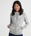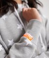 Superdry hættetrøje med gennemgående print og lynlås til kvinder fra Orange Label serien. Hættetrøje med gennemgående print, snøre i hætten, to forlommer og ribkant på ærmer og forneden. Med broderet Superdry logo på brystet og på det ene ærme.