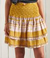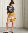 Få den ultimative boho-stemning med den vintage-inspirerede Ameera mininederdel med smockrynket talje og fin perlekant forneden.