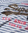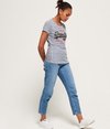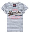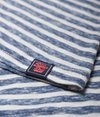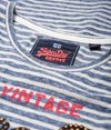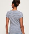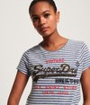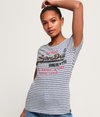 Stribet Superdry Shirt Shop T-shirt til kvinder. T-shirt i et stribet design med rund hals, et Superdry logo med nitter hen over brystet og et Superdry logomærke forneden. Styler du T-shirten med boyfriend-jeans og sneakers, får du et naturligt lækkert look.