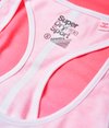 Farvegradueret Superdry Sport tanktop med bryderrygdesign til kvinder. Tanktoppen med bryderryg er perfekt til træning. Designet er farvegradueret, og toppen har et Superdry Sport logo i gummi ned langs fronten og en stribe bagpå med ombre-effekt.