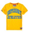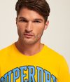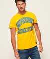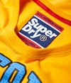 Superdry Team Tigers Podium T-shirt til mænd. En T-shirt med korte ærmer, et stort, gummipræget logo hen over brystet, et Superdry logomærke forneden og et logomærke på det ene ærme.