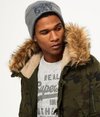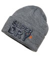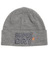 Superdry hue med reliefbroderi til mænd. Afslappet strikhue med foldbar kant og reliefbroderet Superdry logo.